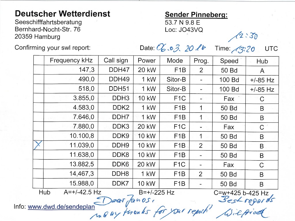 Deutscher Wetterdienst DDH9 on 11039 KHz